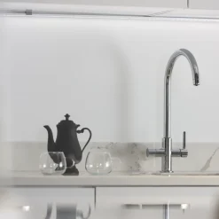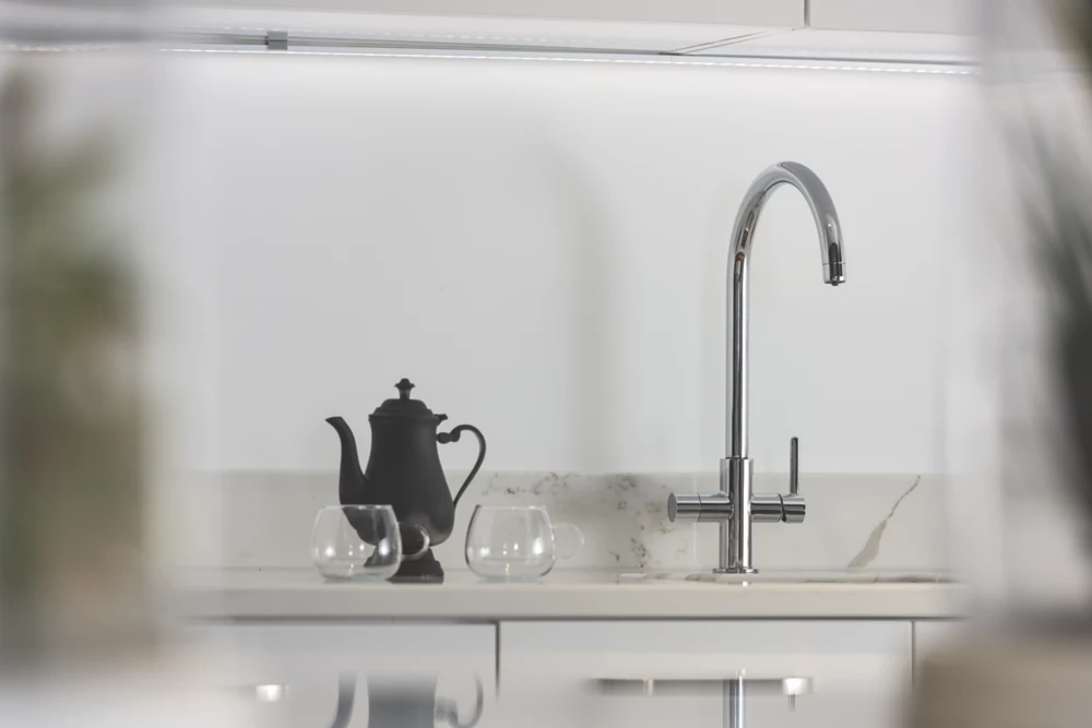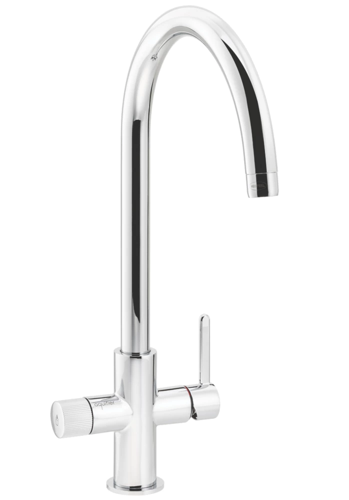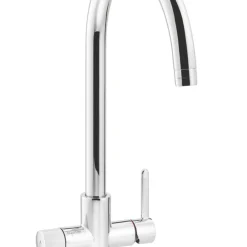 Simple single lever control valve offering smooth flow and temperature control. Filtered drinking water is delivered through a separate channel via a twist of the left handle. Simple to change filter included.