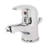 Modern design with a discreet, hidden pull-out hose. Hose is located at the back of the spout. Dual, long handle design with ceramic disc technology for effortless operation. Not supplied with a spray function.