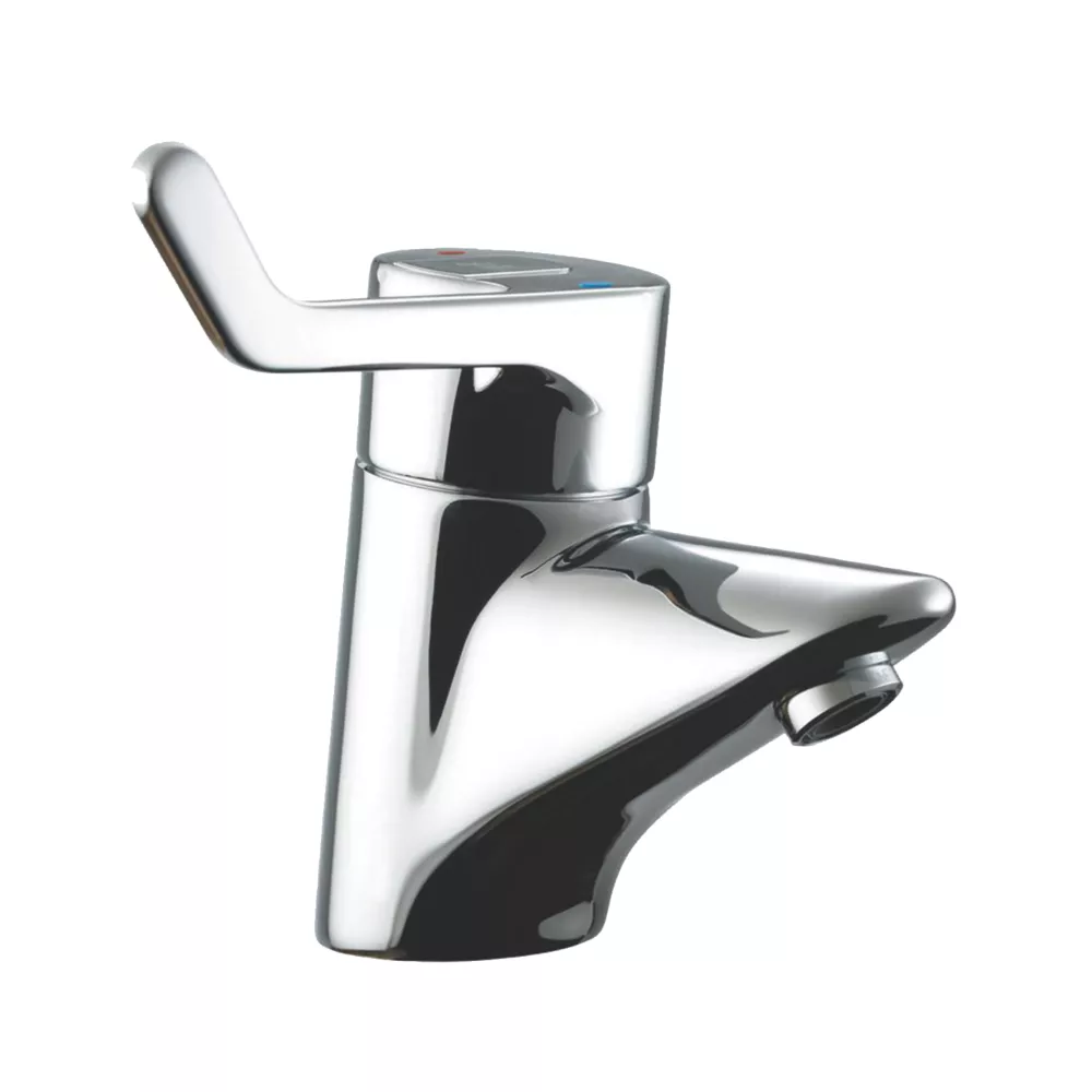 Thermostatic basin mixer tap. Includes additional water-saving, anti-vandal outlet nozzle.