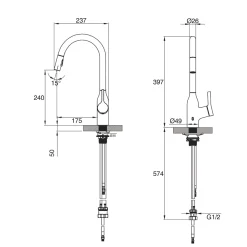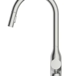 Elegant and versatile tap with smooth-action pull-out spout offering twin-flow options for various kitchen tasks. Motion sensor at front of base offers touchless control when required. Water can be controlled via both the sensor and manually, but handle must be opened to operate sensor control, allowing user to select temperature and flow rate.
