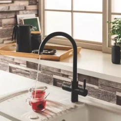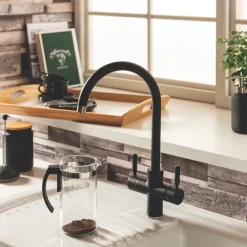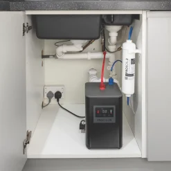 3-in-1 tap delivering steaming hot water up to 98°C. Also provides standard hot and cold water from a mixer.