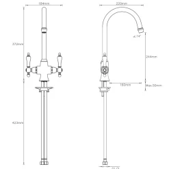 ΒΌ turn operation with a functional swivel spout. Separate hot and cold water controls. Fitted with a Neoperl water saving aerator that regulates the flow of the tap and helps save water with every use. Features an anti-limescale spout that rubs clean, making everyday cleaning and maintenance easy.