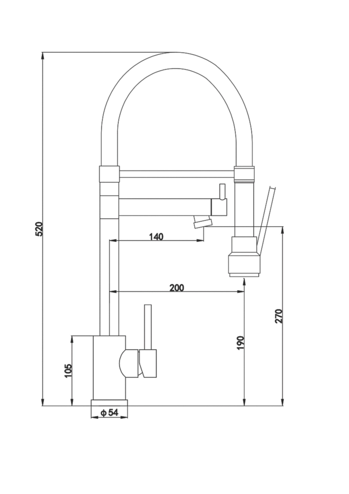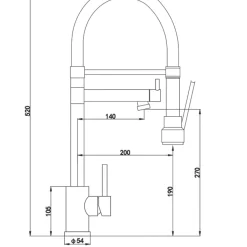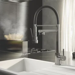 Stylish mixer tap with single-lever operation for ease of use. Features spout for filling bowls and saucepans and handset on flexible, gel-style hose for rinsing.