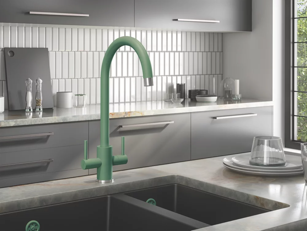ETAL Sorrento Twin Lever Kitchen Mixer Tap Sage Green