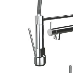 Easy to use, single lever operation. Pull-out spout on flexible hose allows water flow to be directed. Features swivel tap for cleaning heavier items, such as saucepans.