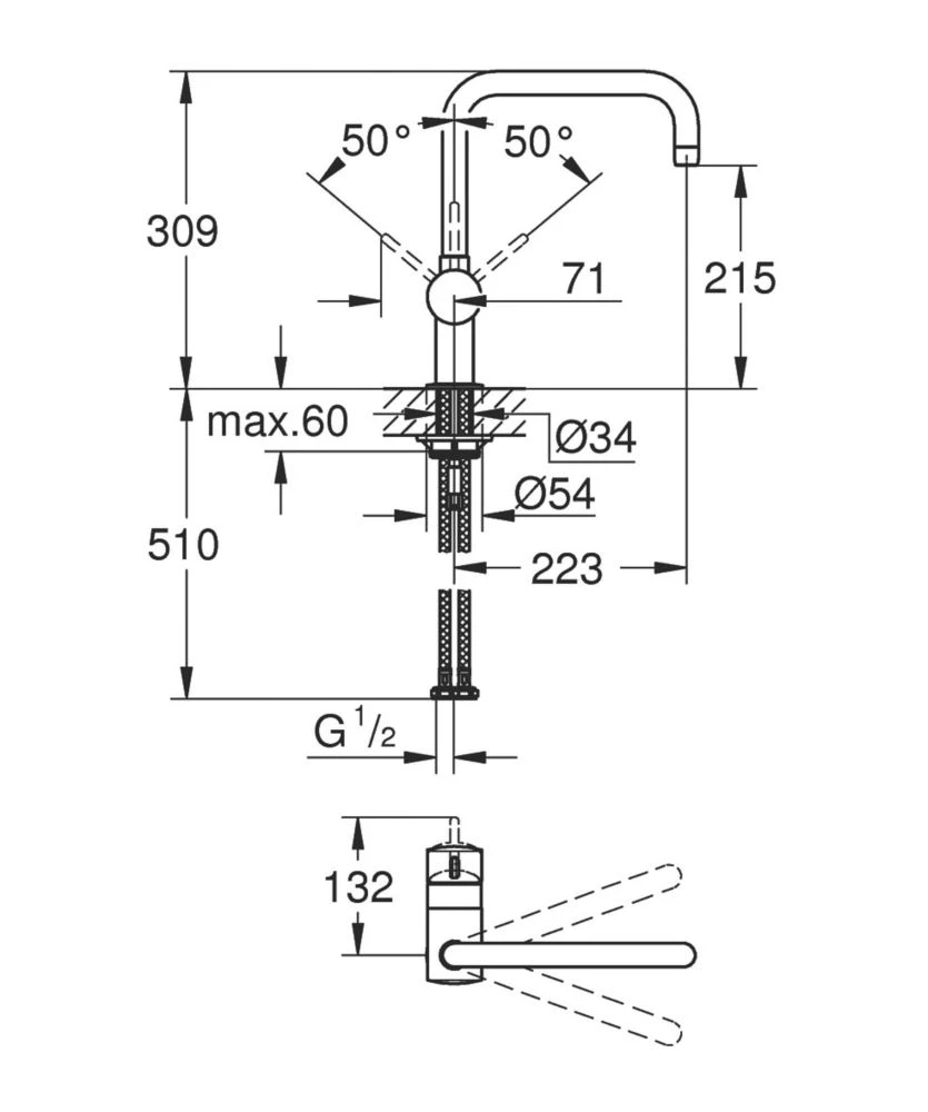 Modern and functional kitchen mono mixer with SilkMove technology for ease of use. Single lever control.