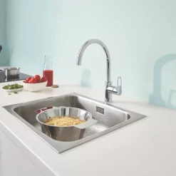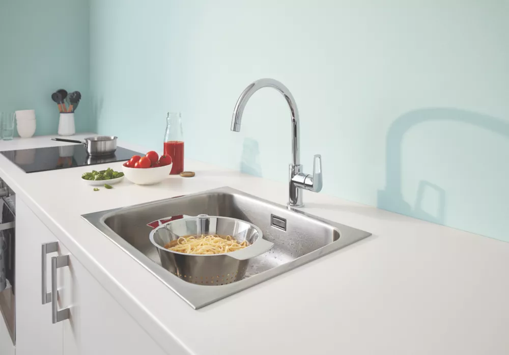Contemporary, sleek kitchen mono mixer tap with 360Ëš swivel spout. Designed to make filling pots and tall vessels easy. Suitable for high and low pressure systems. Chrome finish.